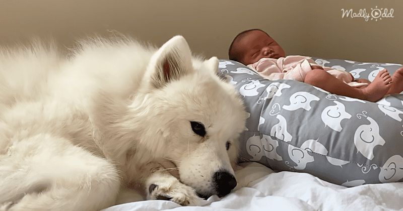 Wooyoo the Samoyed loves the new baby her owner brought home. In fact, she follows the baby around the entire day, even guarding her while she naps.