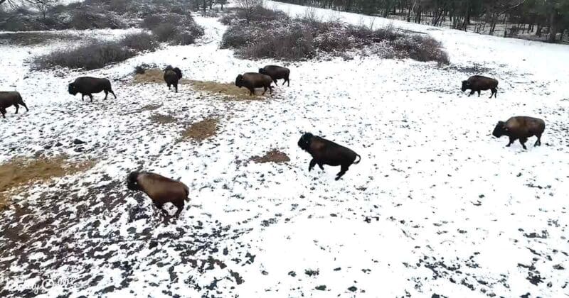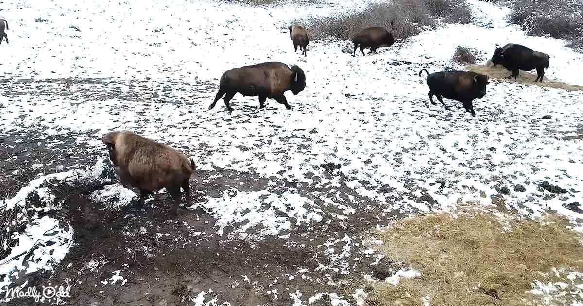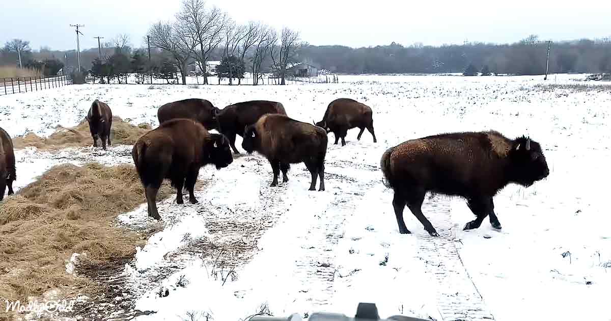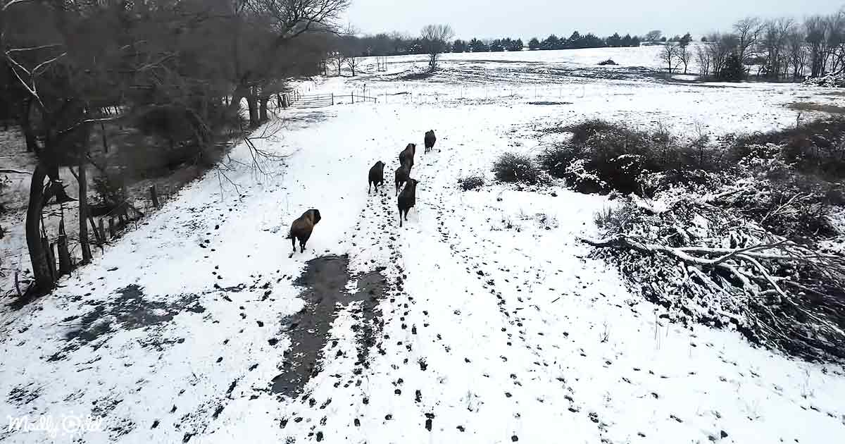 The Bison at Cross Timbers love the snow and the chance to frolic and show their fun and playful nature. They trot and frolic about with their bison buddies and enjoy the day. There are barely three inches of snow, but it is a gorgeous and flawless view of this Oklahoma farm. See the video below to experience the joy.