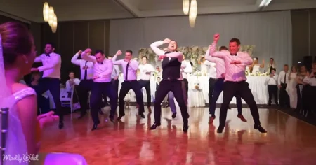 Groom and Friends Don Caps for Hilarious Unexpected Dance
