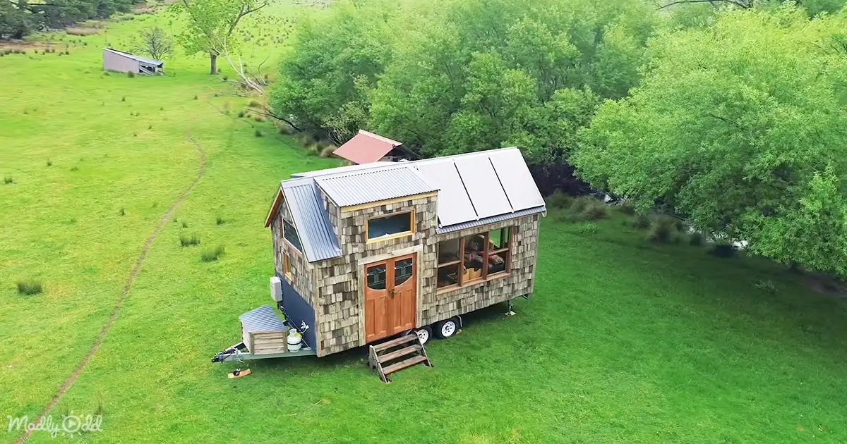This isn’t just any tiny home—it’s a marvel of upcycling, with 70-80% of its structure made from salvaged materials. Its cladding is crafted from old fence palings, each piece with a history, each nail a story of renewal. This house goes beyond merely a living space; it embodies a philosophy, a testament to what we can achieve when we harness the spirit of sustainability.